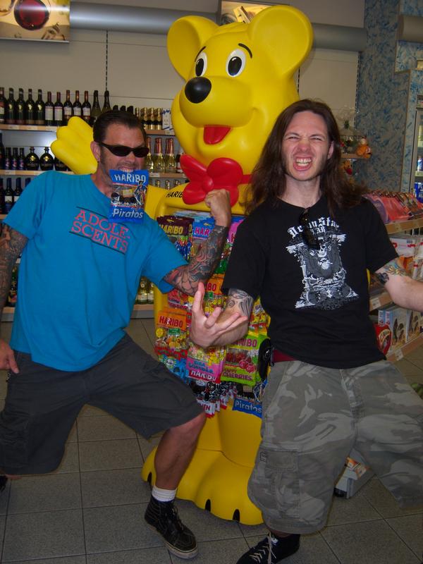 Tim and I celebrating the joys of Haribo at a random German gas station mini mart.