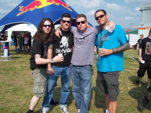 Reno Divorce circa 2009, backstage at With Full Force 2009. L-R: Me, Tye Battistella (Guitar/Vocals), Brent Loveday (Vocals/Lead Guitar), and Tim Jadowski (Bass/Vocals).