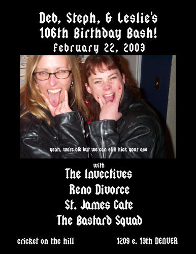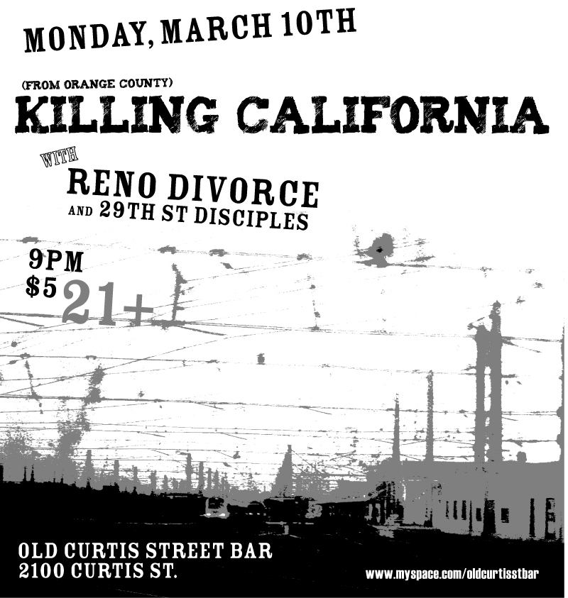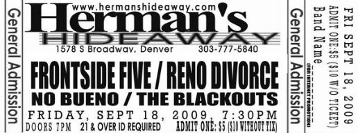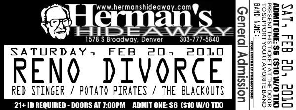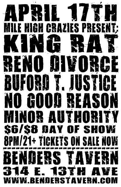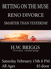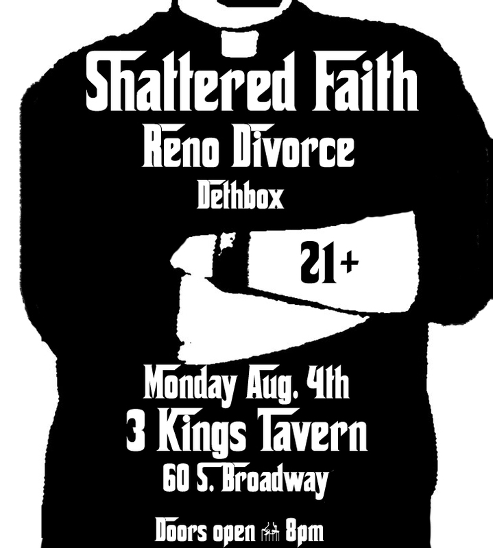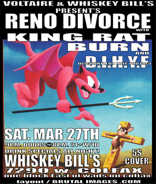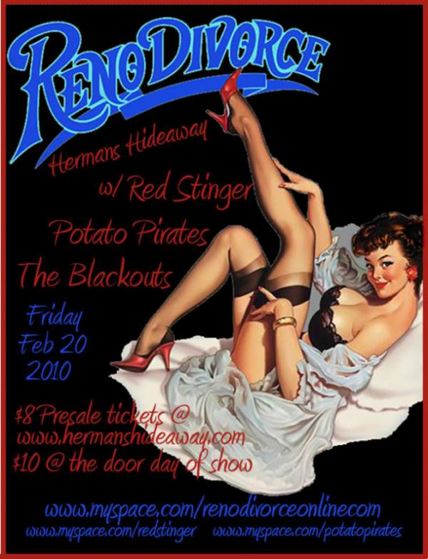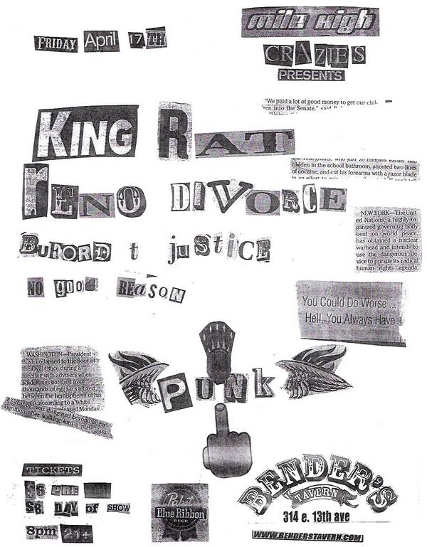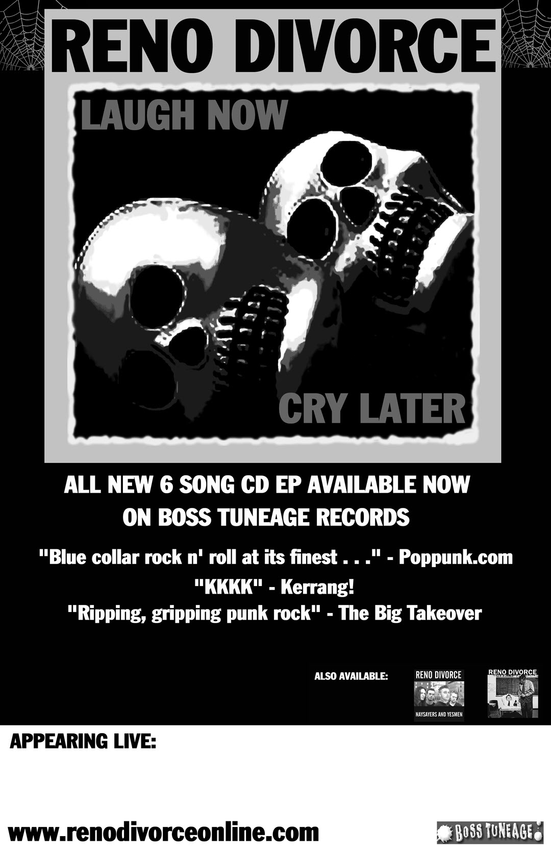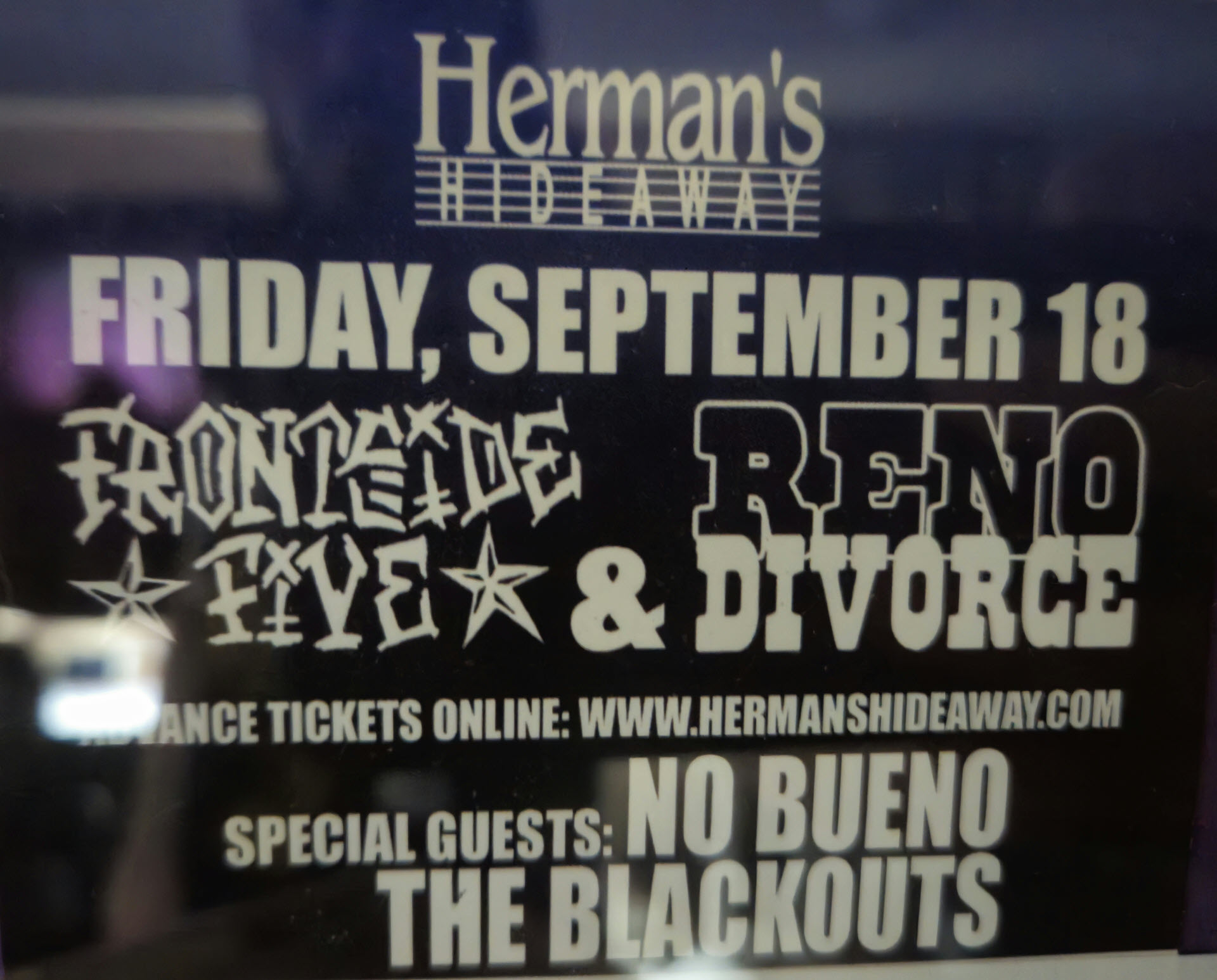 11/4 and both 11/20 shows were canceled.Reno Divorce | Cavern Club | Exeter, UK | 11/14/2004Reno Divorce | Naysayers and Yesmen/Laugh Now Cry Later 2005 advertisementReno Divorce | Bender’s Tavern | Denver, CO | 3/28/2005Reno Divorce | Spring 2005 TourReno Divorce | Spring 2005 TourReno Divorce | 2005 Tour PosterReno Divorce | Naysayers and Yesmen/Laugh Now Cry Later 2005 MySpace handbillsReno Divorce | Striker’s Bar | Superior, WI | 6/11/2005Reno Divorce | Gothic Theater | Denver, CO | 10/28/2005Reno Divorce | Lion’s Lair | Denver, CO | 11/19/2005Reno Divorce | Grindwell Skate Park | Castle Rock, CO | 11/26/2005Reno Divorce | Cricket on the Hill | Denver, CO | 12/3/2005Reno Divorce | December 2005 shows with Agent Orange and the BlastersReno Divorce | Bluebird Theater | Denver, CO | 12/18/2005Reno Divorce | Naysayers and Yesmen/Laugh Now Cry Later 2006 advertisementReno Divorce | 2006 Tour PosterReno Divorce | Spring 2006 TourReno Divorce | Double Down Saloon | Las Vegas, NV | 3/25/2006Reno Divorce | Bluebird Theater | Denver, CO | 7/16/2006Reno Divorce | Palace Ballroom | Colorado Springs, CO | 10/13/2006Reno Divorce | Bender’s Tavern | Denver, CO | 10/20/2006Reno Divorce | 3 Kings | Denver, CO | 11/22/2006Reno Divorce | 3 Kings Tavern | Denver, CO | 1/6/2007Reno Divorce | Marquis Theater | Denver, CO | 1/20/2007Reno Divorce | Cricket on the Hill | Denver, CO | 2/10/2007Reno Divorce | Bender’s Tavern | Denver, CO | 2/18/2007Reno Divorce | 3 Kings Tavern | Denver, CO | 3/8/2007Reno Divorce | Triple Nickel Tavern | Colorado Springs, CO | 3/9/2007Reno Divorce | 12 Volt Tavern | Arvada, CO | 4/7/2007Reno Divorce | Pasquini’s | Denver, CO | 4/27/2007Reno Divorce | 15th St Tavern | Denver, CO | 5/19/2007Reno Divorce | Marquis Theater | Denver, CO | 6/29/2007Reno Divorce | Summer 2007 Tour Reno Divorce | Poster for collaboration with Tattooed Lady clothing | 2007Reno Divorce autographed 8×10 | 2007Reno Divorce | Rocket Room | Colorado Springs, CO | 8/10/2007Reno Divorce | Spotlight Lounge | Grand Junction, CO | 8/11/2007Reno Divorce | Walnut Room | Denver, CO | 8/17/2007Reno Divorce | 12 Volt Tavern | Arvada, CO | 10/26/2007Reno Divorce | Spotlight Lounge | Grand Junction, CO | 10/27/2007Reno Divorce | Bender’s Tavern | Denver, CO | 11/3/2007Reno Divorce | 3 Kings | Denver, CO | 12/21/2007Reno Divorce | Marquis Theater | Denver, CO | 1/19/2008Reno Divorce | February 2008 showsReno Divorce | Bender’s Tavern | Denver, CO | 2/16/2008Reno Divorce | Club Inferno | Denver, CO | 2/29/2008Reno Divorce | Old Curtis Street Pub | Denver, CO | 3/10/2008Reno Divorce | Marquis Theater | Denver, CO | 3/22/2008Reno Divorce | Marquis Theater | Denver, CO | 3/22/2008Reno Divorce | Private Party | Denver, CO | 4/5/2008Reno Divorce | The Black Sheep | Colorado Springs, CO | 5/17/2008Reno Divorce | Spring 2008 TourReno Divorce | 2008 Tour PosterReno Divorce | Kenny B’s | Manitowoc, WI | 5/31/2008Reno Divorce | Bender’s Tavern | Denver, CO | 6/20/2008Reno Divorce | Summer 2008 showsReno Divorce | 3 Kings Tavern | Denver, CO | 8/4/2008Reno Divorce | Ogden Theater | Denver, CO | 1/30/2009Reno Divorce | 3 Kings Tavern | Denver, CO | 2/7/2009Reno Divorce | Sidepocket Lounge | Kilgore, TX | 2/20/2009Reno Divorce | Texas Hotrod Hoedown | New Caney, TX | 2/21/2009Reno Divorce | Bluebird Theater | Denver, CO | 3/13/2009The Mansfields | Tonic | Reno, NV | 3/14/2009 Reno Divorce | Bender’s Tavern | Denver, CO | 4/17/2009Reno Divorce | Bender’s Tavern | Denver, CO | 4/17/2009Reno Divorce | Bluebird Theater | Denver, CO | 5/2/2009Reno Divorce | 3 Kings | Denver, CO | 5/20/2009Reno Divorce | Celtic House Pub | Parker, CO | 5/23/2009Reno Divorce | Westword Music Showcase | Bannock Street Garage | Denver, CO | 6/13/2009Reno Divorce | Marquis Theater | Denver, CO | 6/26/2009Reno Divorce | Marquis Theater | Denver, CO | 6/26/2009Reno Divorce | European Tour Poster | July 2009Reno Divorce | I Scream Records poster for Tears Before Breakfast and Summer 2009 European TourReno Divorce | Club Bogaloo | Pfarrkirchen, GERMANY | 7/10/2009Reno Divorce | Sjock Festival | Gierle, BELGIUM | 7/11/2009Reno Divorce | Trix | Antwerp, BELGIUM | 7/12/2009Reno Divorce | Walfisch | Freiburg, GERMANY | 7/14/2009 Schedule lists old date of 8/8, before show was moved to 7/14Reno Divorce | Herman’s Hideaway | Denver, CO | 9/18/2009Reno Divorce | Herman’s Hideaway | Denver, CO | 9/18/2009Reno Divorce | European Tour Poster | November & December 2009Reno Divorce | Archiv | Potsdam, GERMANY | 11/21/2009Reno Divorce | Dekompresja | Lodz, POLAND | 11/22/2009Reno Divorce | Ucho | Gdynia, POLAND | 11/23/2009Reno Divorce | Viper Room | Vienna, AUSTRIA | 11/25/2009Reno Divorce | Speedfest | Eindhoven, NETHERLANDS | 11/28/2009Reno Divorce | Kato Club | Berlin, GERMANY | 11/30/2009Reno Divorce | City Invasion | Sheffield & London, UK| 12/5 & 12/6/2009Reno Divorce | AZ | Aachen, GERMANY | 12/7/2009Reno Divorce | Az | Aachen, GERMANY | 12/7/2009Reno Divorce | Ogden Theater | Denver, CO | 1/14/2010Reno Divorce | Marquis Theater | Denver, CO | 2/6/2010Reno Divorce | Herman’s Hideaway | Denver, CO | 2/20/2010Reno Divorce | Herman’s Hideaway | Denver, CO | 2/20/2010Reno Divorce | Texas Hotrod Hoedown | New Caney, TX | 2/27/2010To The Glorious Lonely | Fuel | Seattle, WA | 4/10/2010 | Reunited onstage with Jeff Rouse of Rhino Humpers.Third Law of Motion | Fuel | Seattle, WA | 5/27/2011Third Law of Motion Setlist | 2011Third Law of Motion | Backstage Bar and Grill | Tacoma, WA | 3/17/2012 | To date, my last time playing drums on stage.